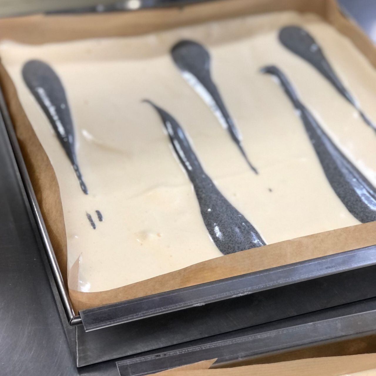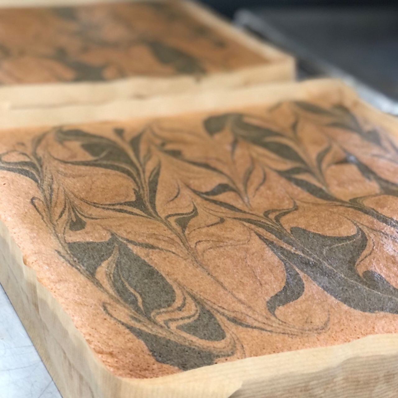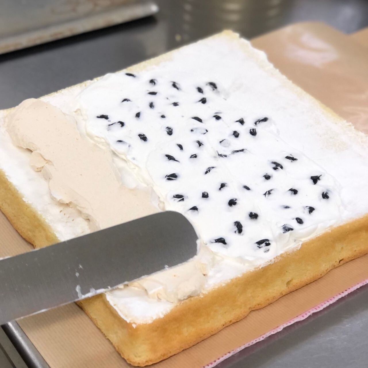 鬼のパンツをイメージしたスポンジに、黒豆ときな粉クリーム、生クリームを合わせました。豆づくしに仕上がっています♪